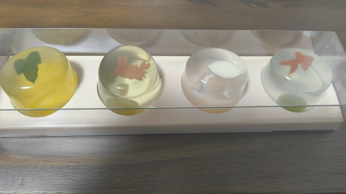 金魚などが、ゼリーの中で揺れるのが可愛いです