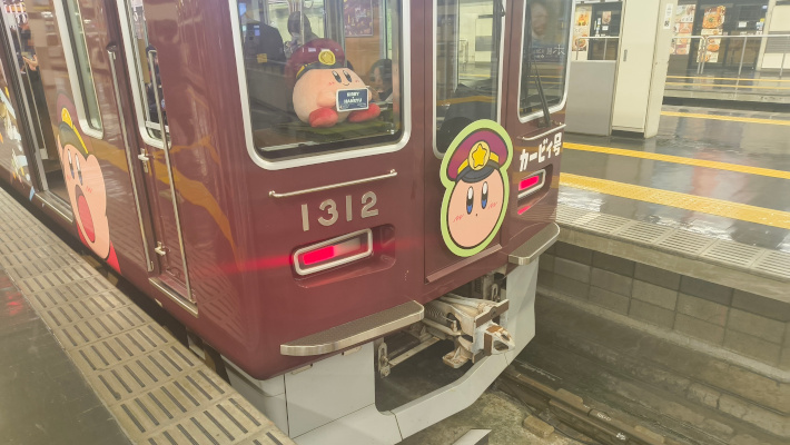 2025/08/22~2026/03/17の期間、阪急電車と星のカービィのコラボで、ラッピング車両が走っています