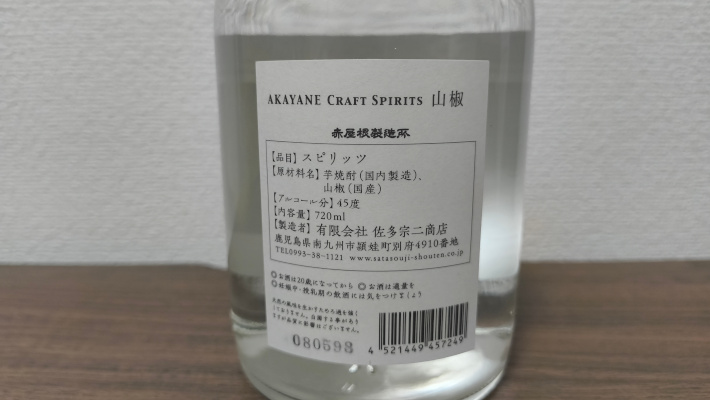 佐多宗二商店さんの芋焼酎ベースの山椒を使ったスピリッツです