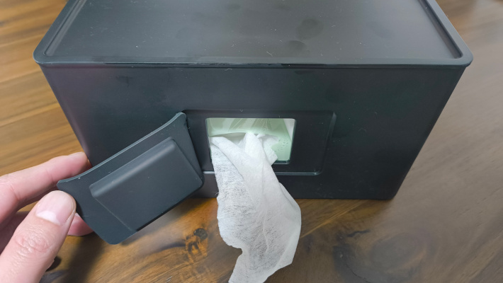 上部の蓋を開けてティッシュとウェットシートを設置します