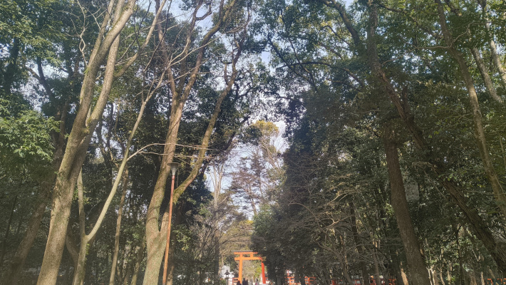 本殿に向かう道に、糺の森(ただすのもり)があります